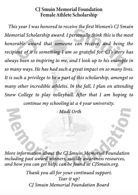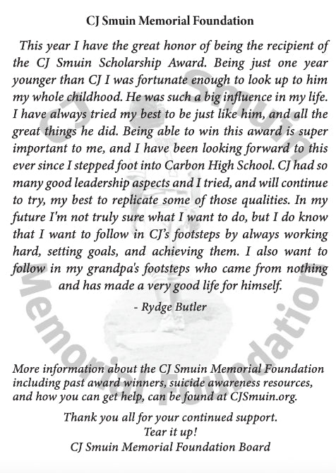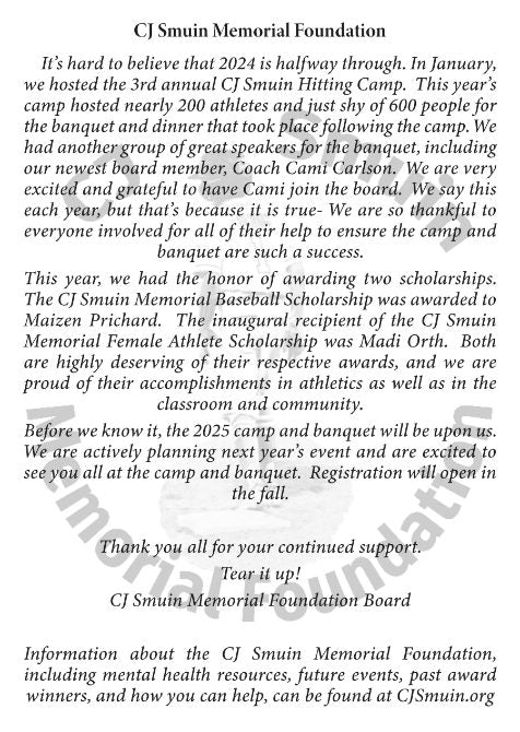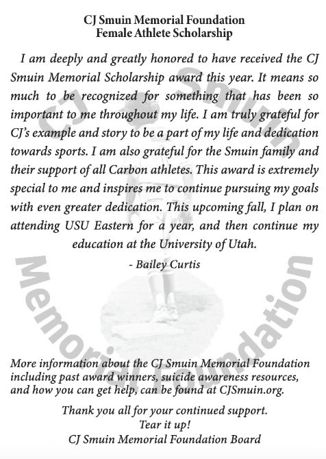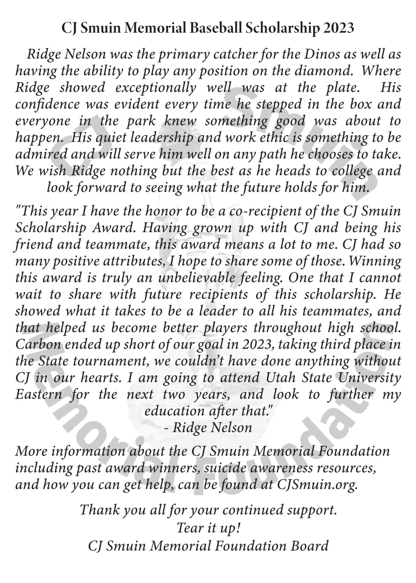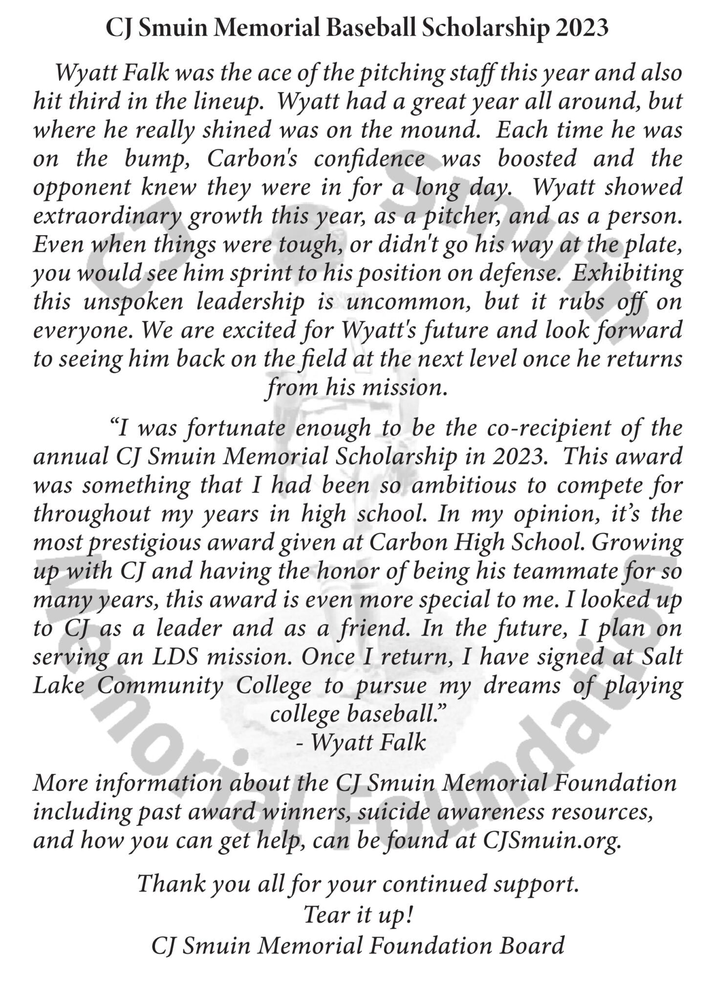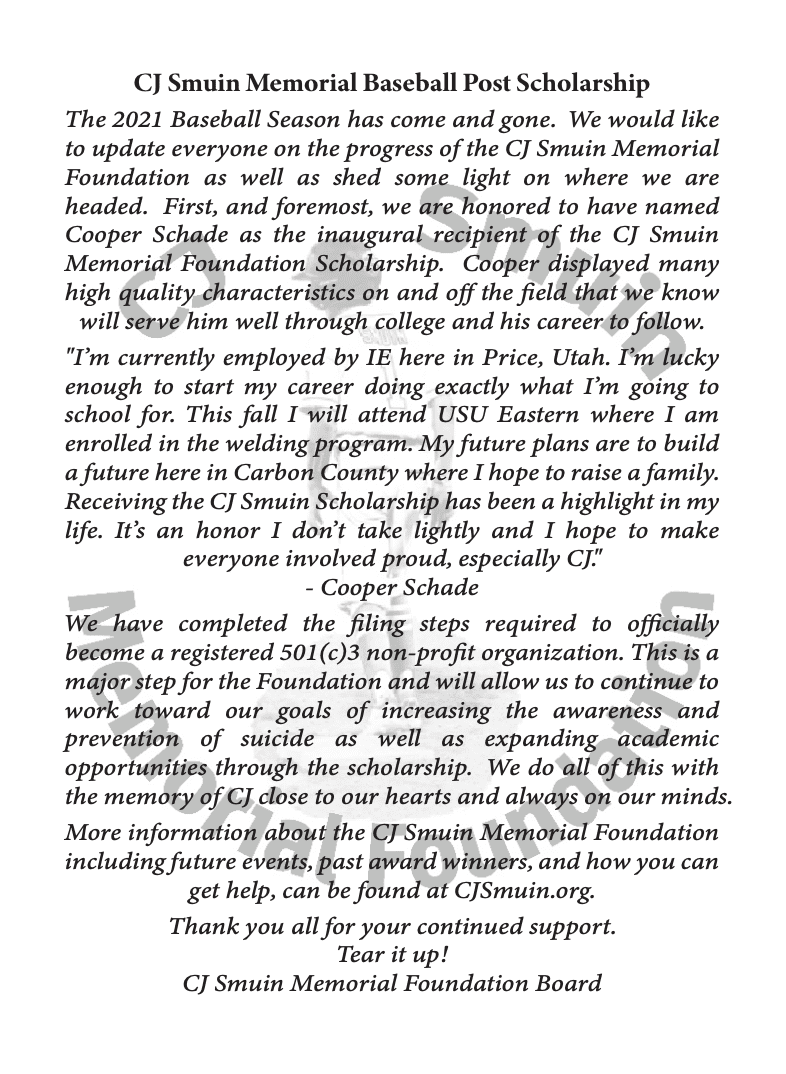 Baseball cards for the CJ Smuin Memorial Baseball Scholarship are generously donated by Peczuh Printing.